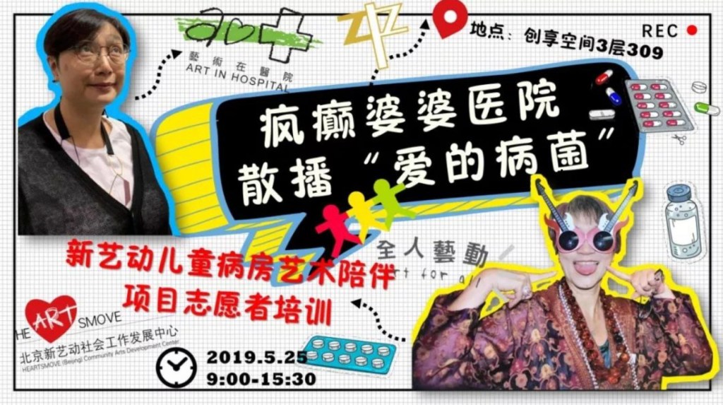 全人藝動 和 藝術在醫院受到北京新藝動社會工作發展中心的邀請,於2019年5月去到北京兒童醫院,培訓一群項目志願者如何用藝術去陪伴醫院內孩子