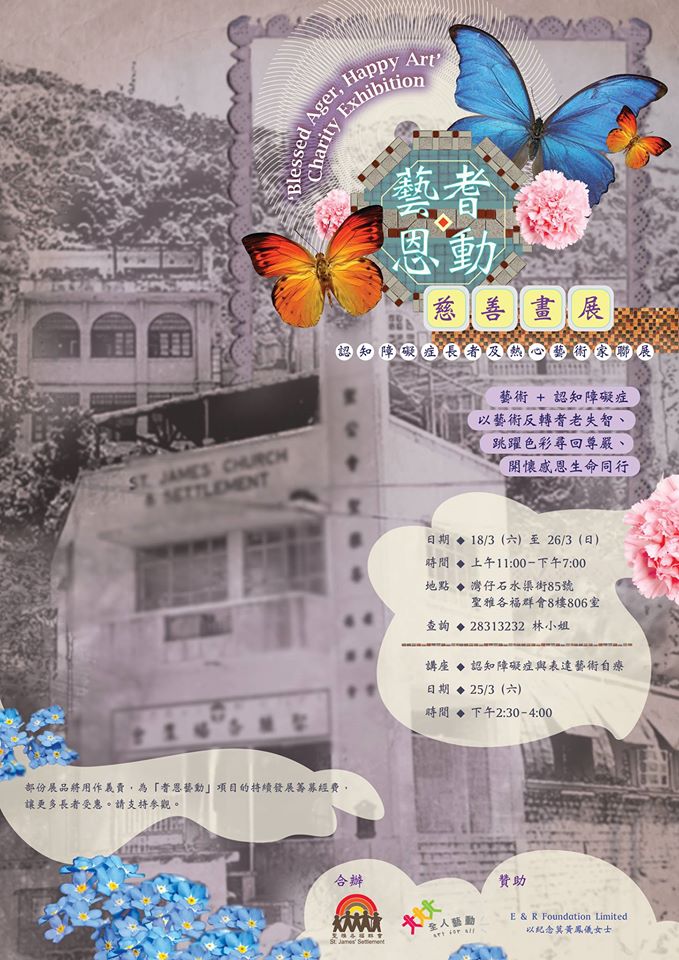 全 人藝動與聖 雅各福群會,得到E & R Foundation支 持,攜手在認知障礙症人士服務中加入 藝術元素,在 灣仔健智支援服務中心開展「耆恩藝動」長者認知障礙症與自療性藝術工作坊;以藝術創作描繪毛蟲蛻變成蝴蝶的成長歷程,藉此讓參加者回 顧不同的生活片段,重尋趣味。透 過多元表達藝術自療,紓緩 受影響長者們因 記憶及表達能 力衰弱所出 現的焦慮和不安,用藝術創意重組迷失的過去,表達個 人內 心世界和感受。