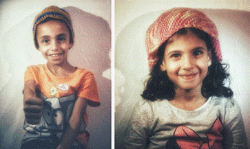 這些孩子所戴的帽子,是由香港一些有情緒病患的婦女親手為難民小孩們編織的。